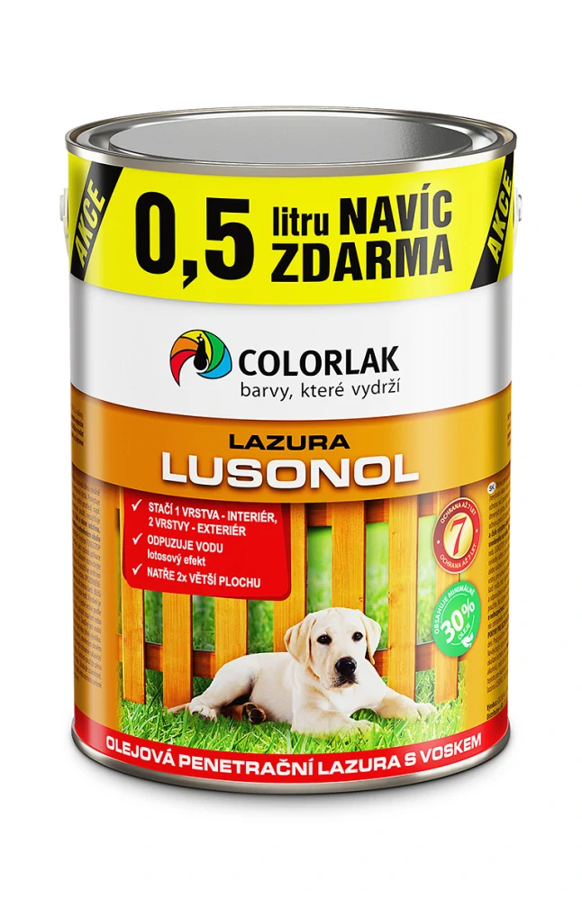 - Díky unikátnímu složení a vysokému podílu oleje zajišťuje LUSONOL vysokou ochranu proti povětrnosti i UV záření až 7 let.